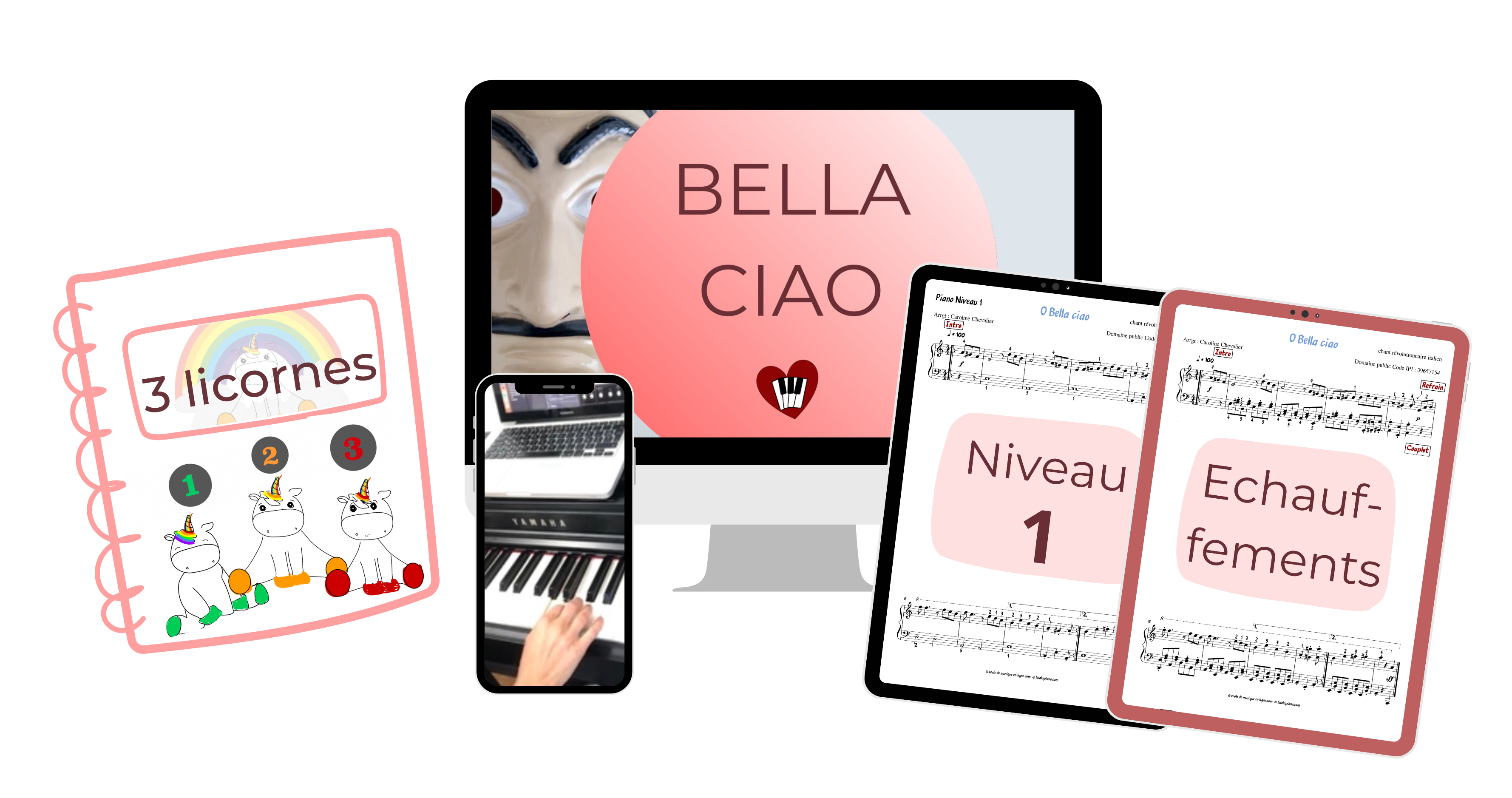🎹 [Debutant] Bella Ciao-Débutants, niveau 1 + échauffement + 3 licornes