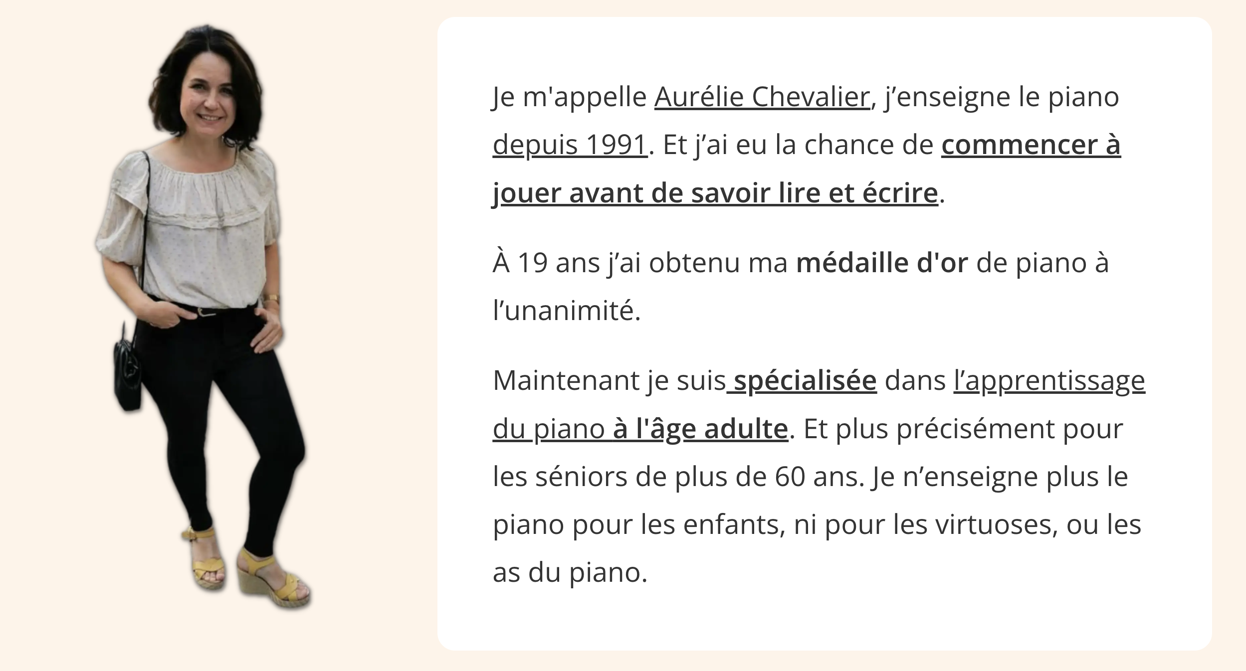 Bonjour, moi c’est Aurélie, professeur de piano depuis 34 ans.