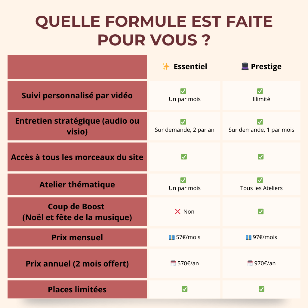 ✅ Et passer à la formule Prestige en un clic si tu souhaites un accompagnement personnalisé.